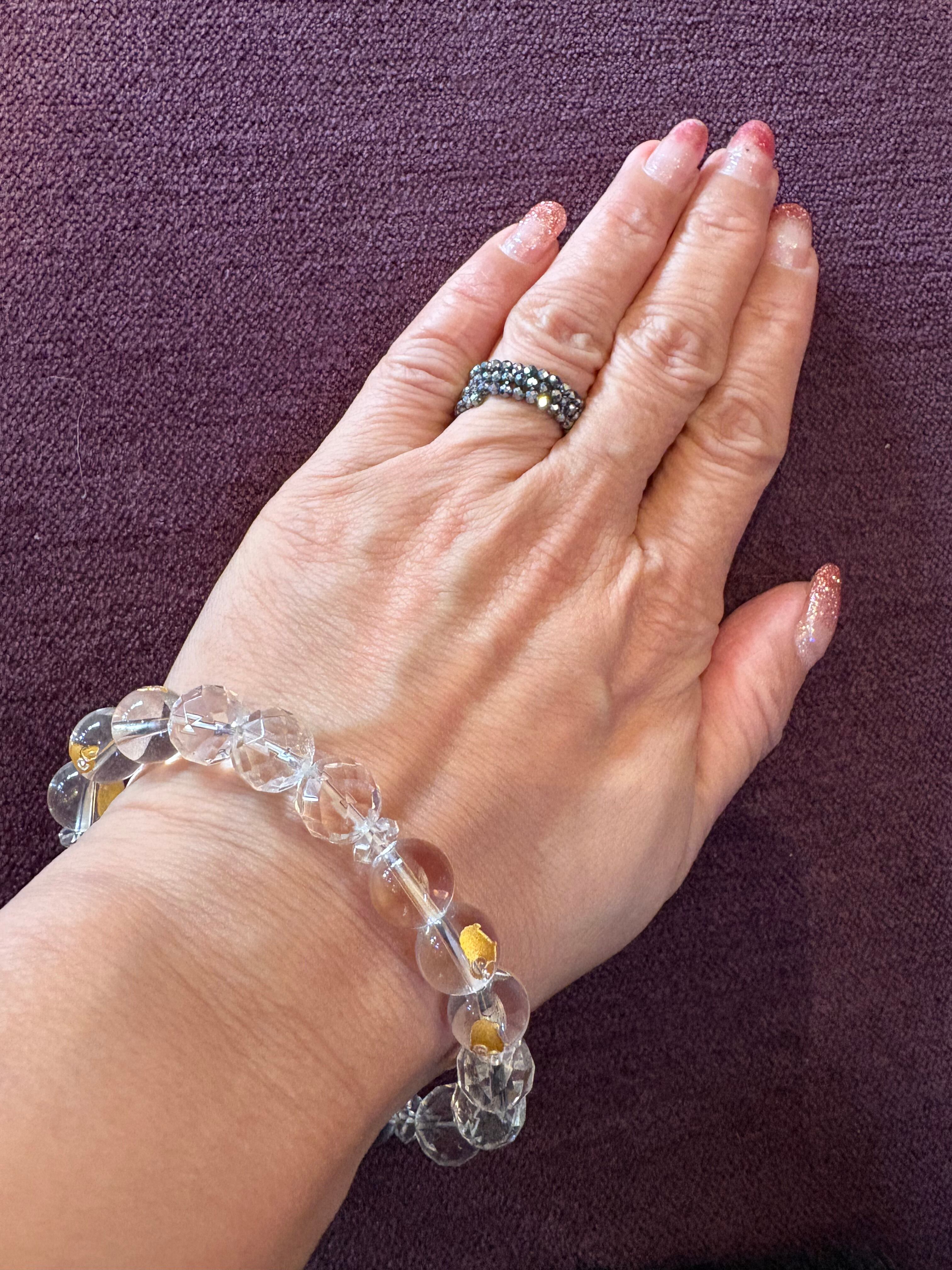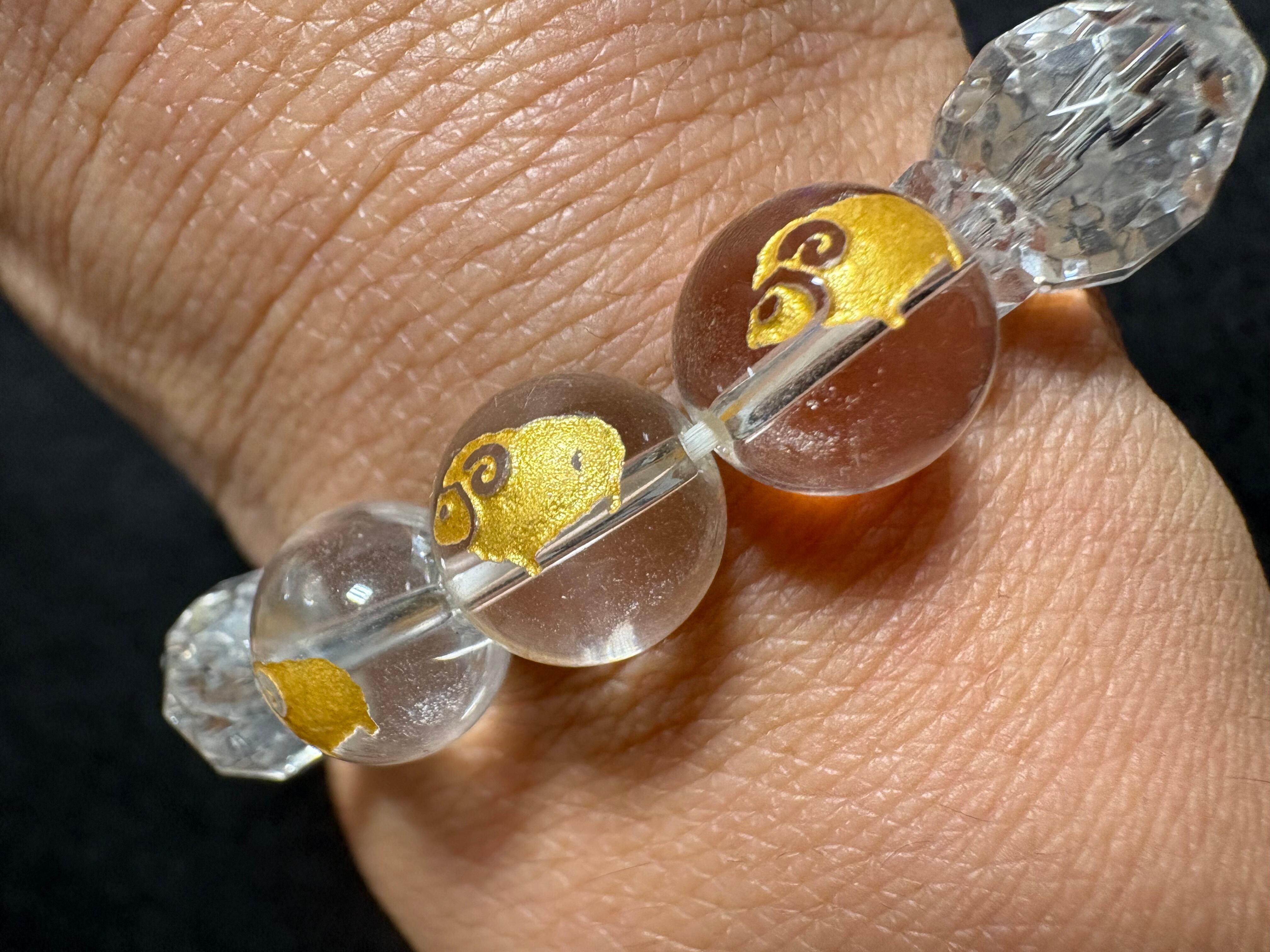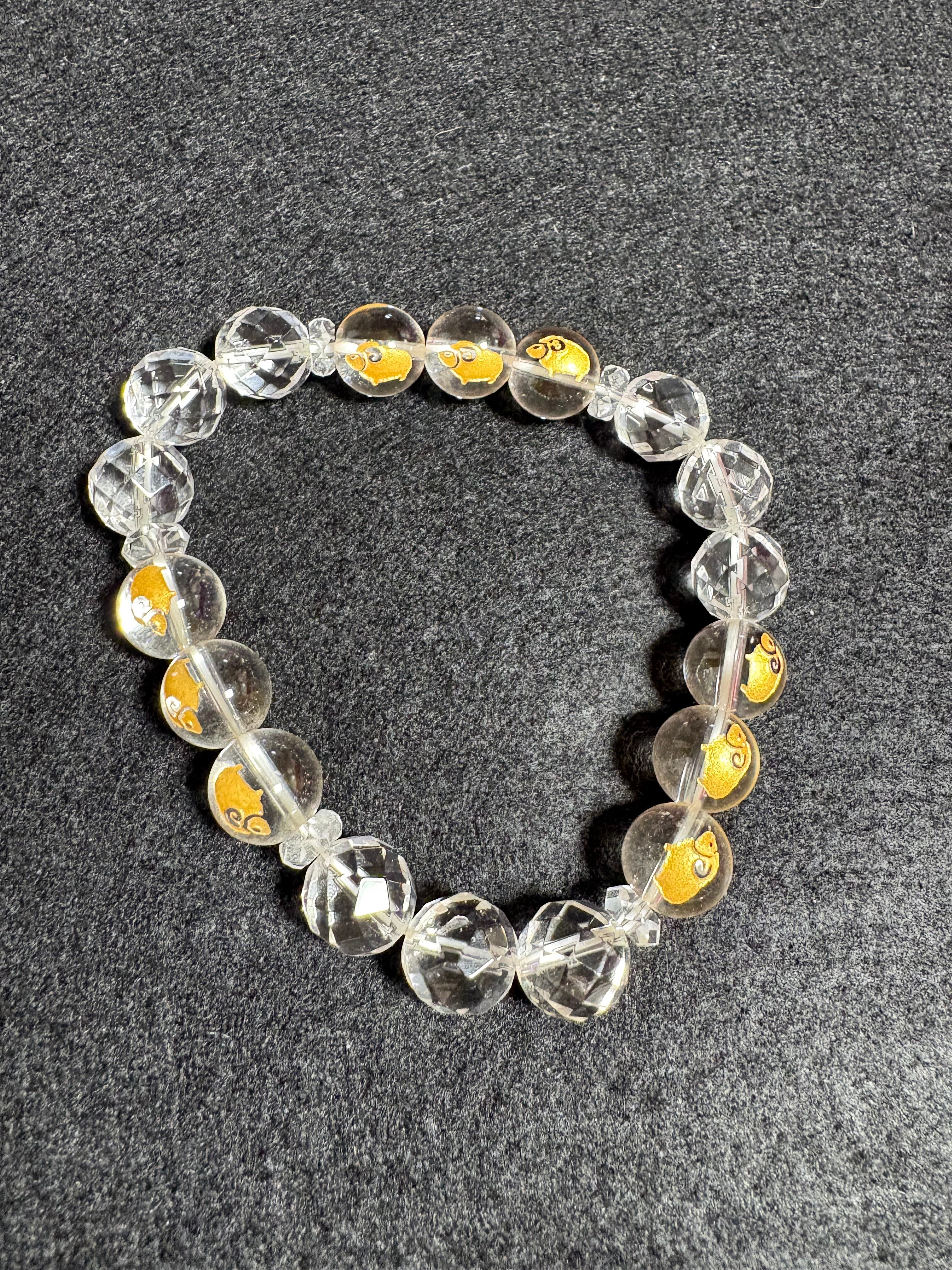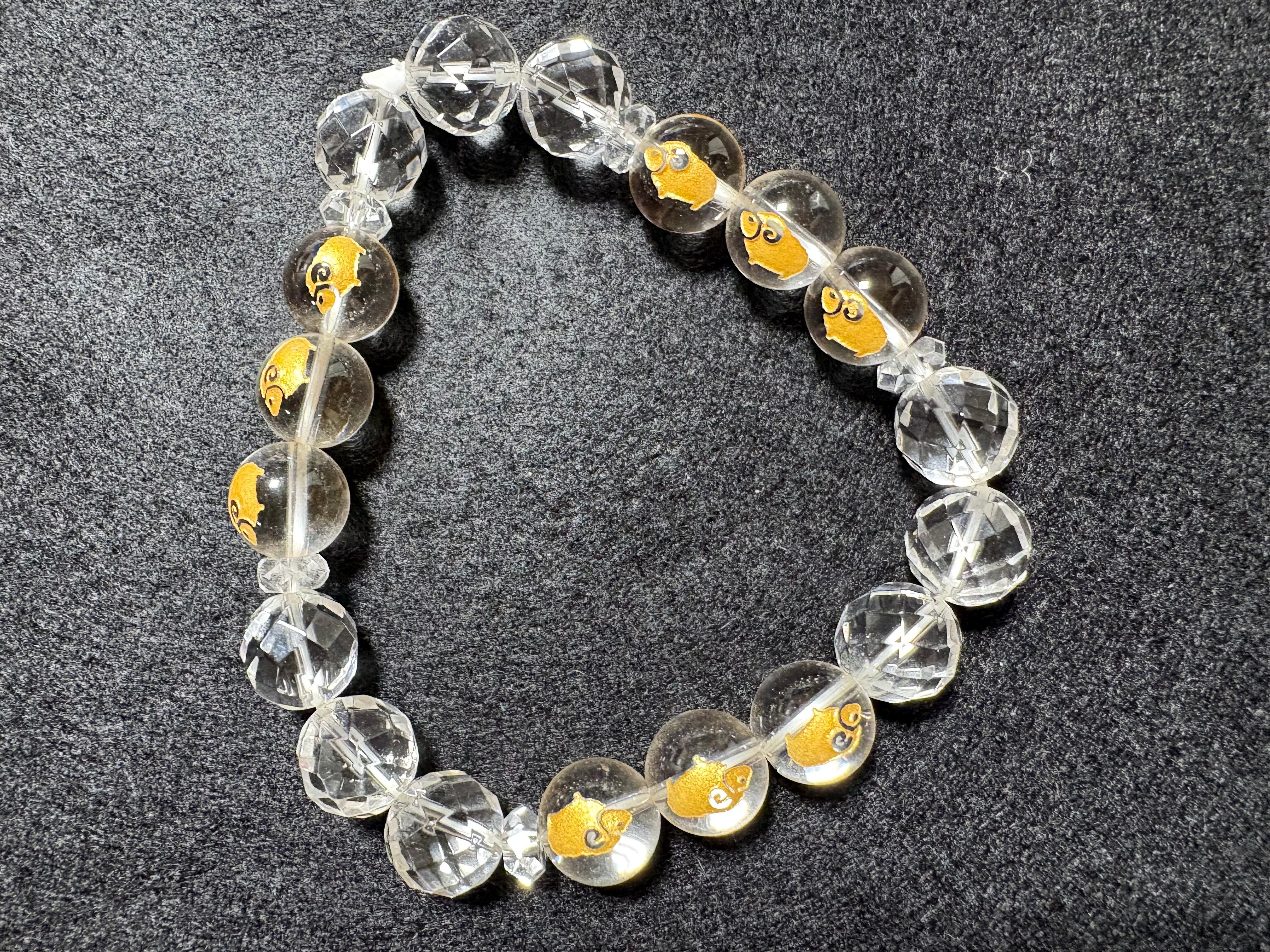 水晶ブレスレットですが 九つ金色の羊が描かれた 羊九いく(ようくいく)ブレスレット